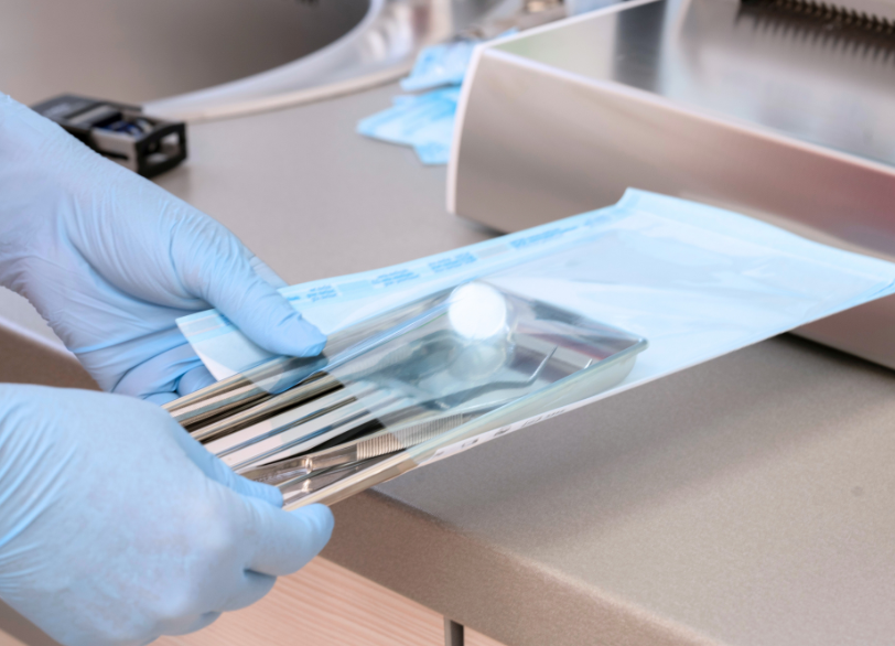 院内感染防止の徹底を図るため、当院では治療器具を高圧蒸気滅菌後に個別の専用パックへ封入し、使用直前に開封しています。