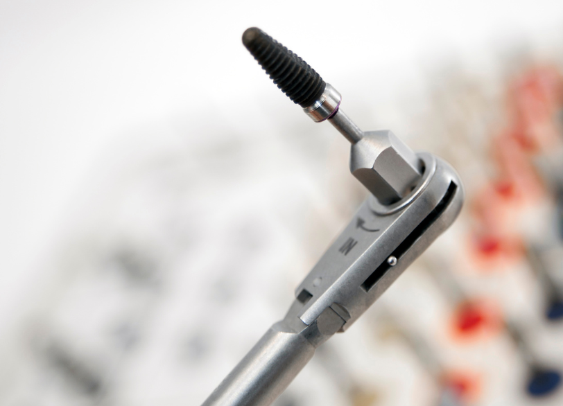 術後は専用インプラント用ドリルやトルクレンチを使用して初期固定を確認し、長期予後を左右する初期安定性を確保します。