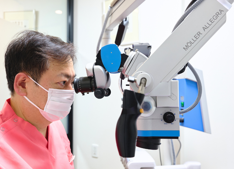 当院ではマイクロスコープ(歯科治療用顕微鏡)を備え、高倍率で患部を観察して治療しています。